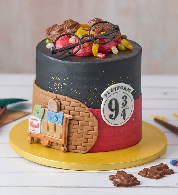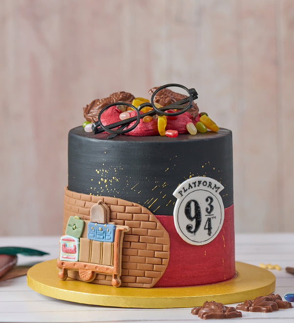 Embark on your own sensory journey to Hogwarts with this marvellous creation that includes all the flavours from the Hogwarts Express. From chocolate frogs to Butterbeer candy and Bertie Bott’s Every Flavour Beans™, this triple-layered cake embellished with an edible Platform 9¾ and a luggage trolley will take your taste buds out of this world.