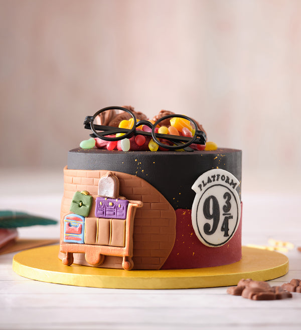Embark on your own sensory journey to Hogwarts with this marvellous creation that includes all the flavours from the Hogwarts Express. From chocolate frogs to Butterbeer candy and Bertie Bott’s Every Flavour Beans™, this triple-layered cake embellished with an edible Platform 9¾ and a luggage trolley will take your taste buds out of this world.