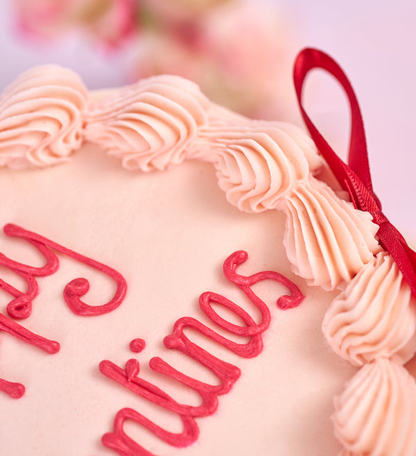 Fall in love with this vintage Valentine’s cake, finished with soft pink vanilla icing and adorned with romantic red bows. A beautifully nostalgic treat made for sharing, gifting, and celebrating love.