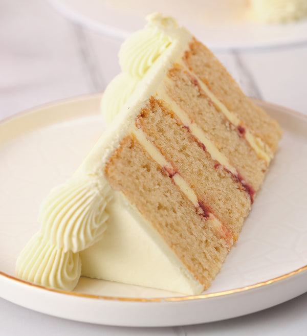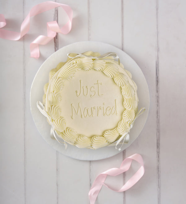 Treat yourself to a slice of simple vintage charm! Decorated with a creamy white vanilla icing and optional matching bows, it’s a nostalgic delight in every bite.